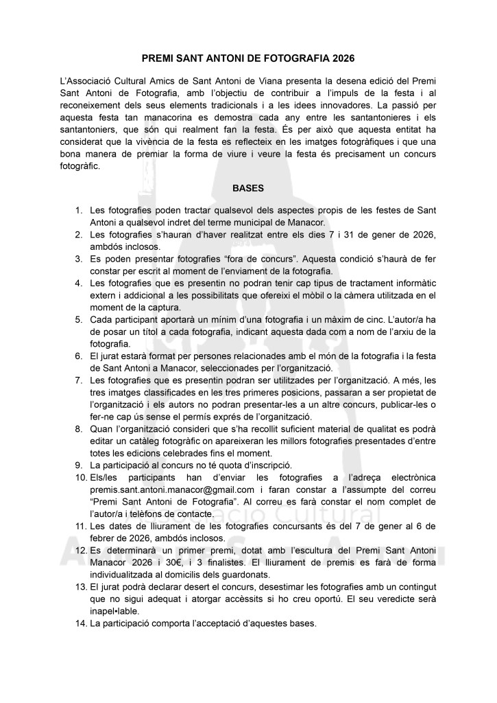 A poc més d’un mes per a la Revetlla de Sant Antoni, us presentam el cartell dels Premis Sant Antoni 2026 en les categories següents: